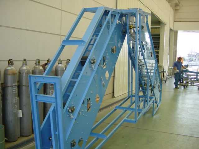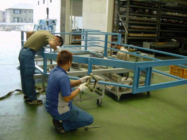「エスカレータタイプ集卵機」の枠部品の組立て