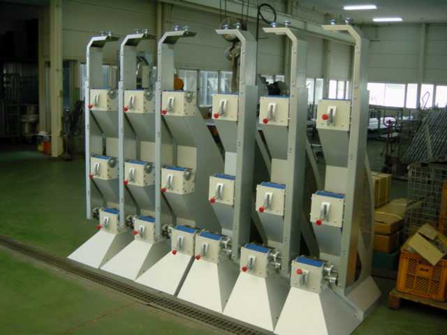 工場内に並べられた「エスカレータタイプ集卵