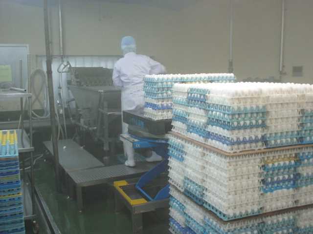 B 洗浄殺菌槽から割卵工程の部屋へ